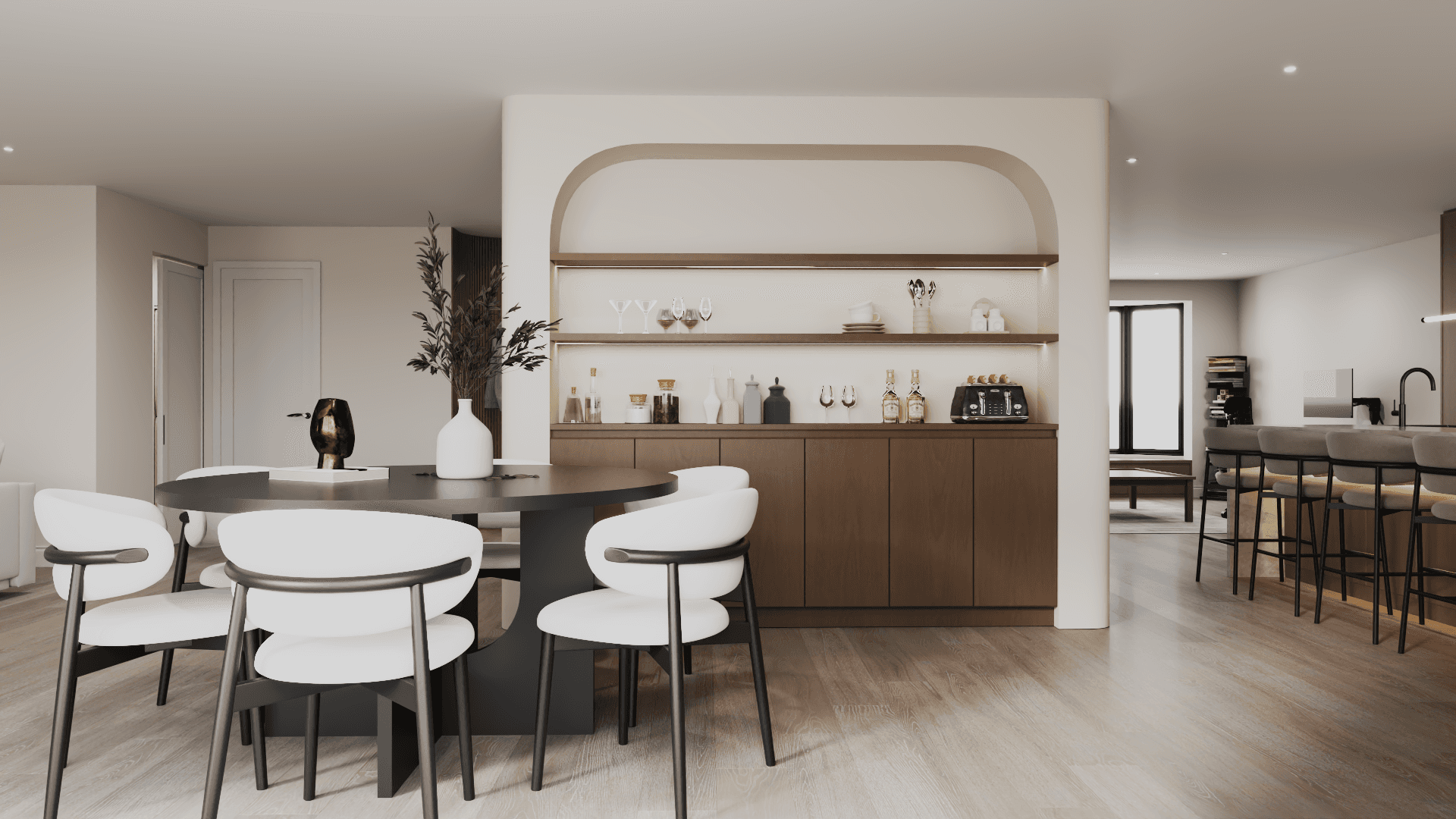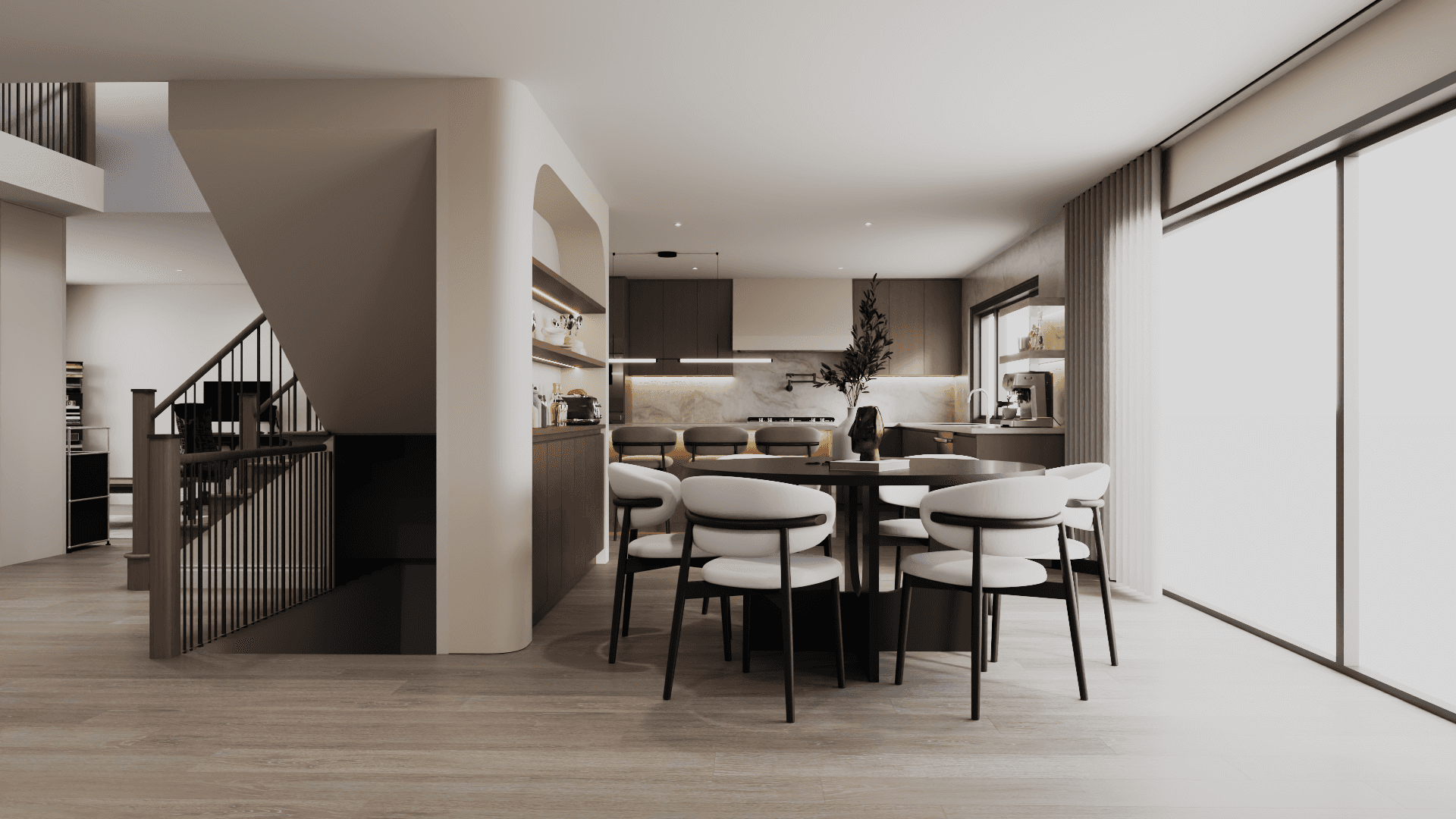 A home shaped through the dialogue of light, materiality, and form—designed to feel warm, open, and effortlessly calm.