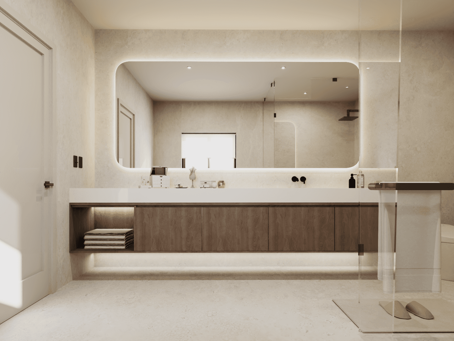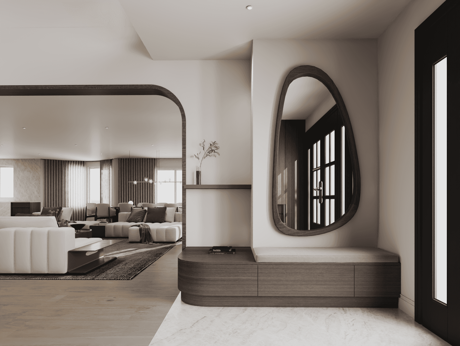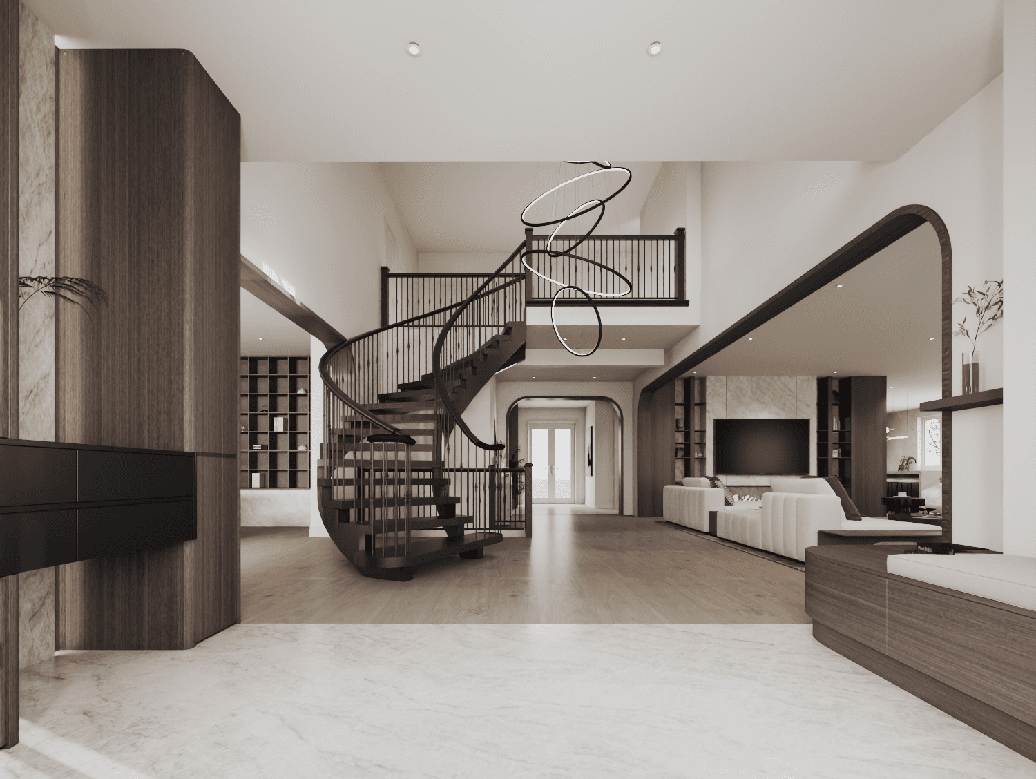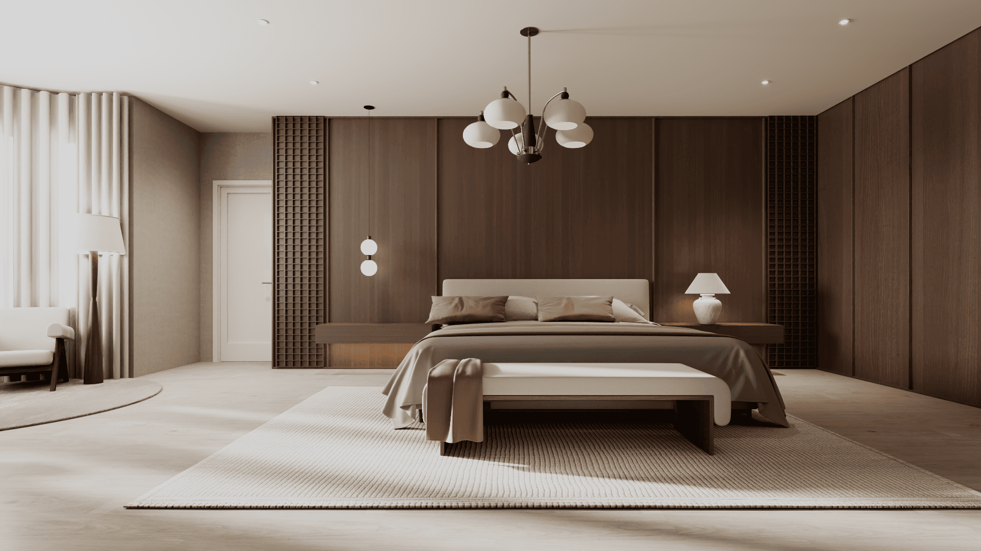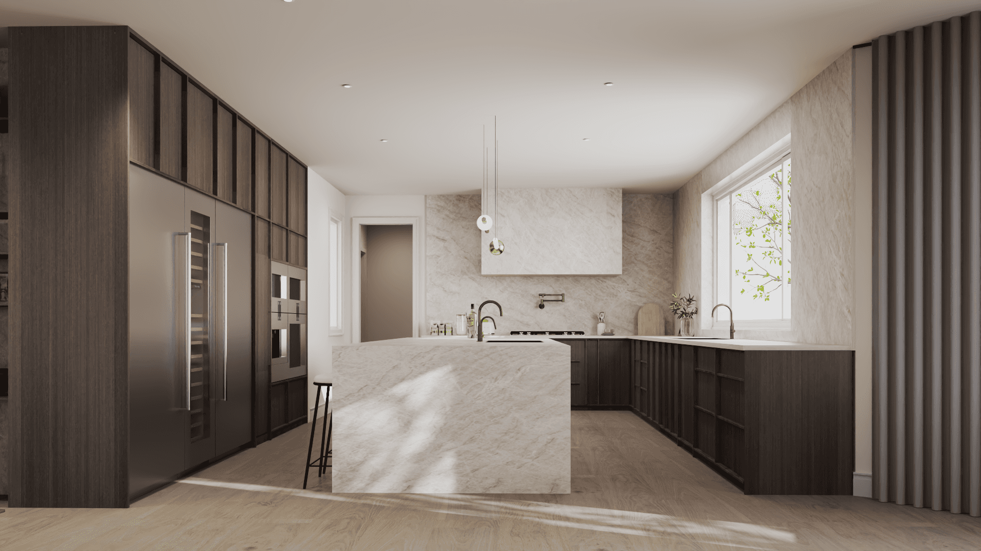A whole-home renovation defined by a walnut-forward palette and natural stone accents—mid-century–influenced warmth refined through contemporary, architectural restraint.