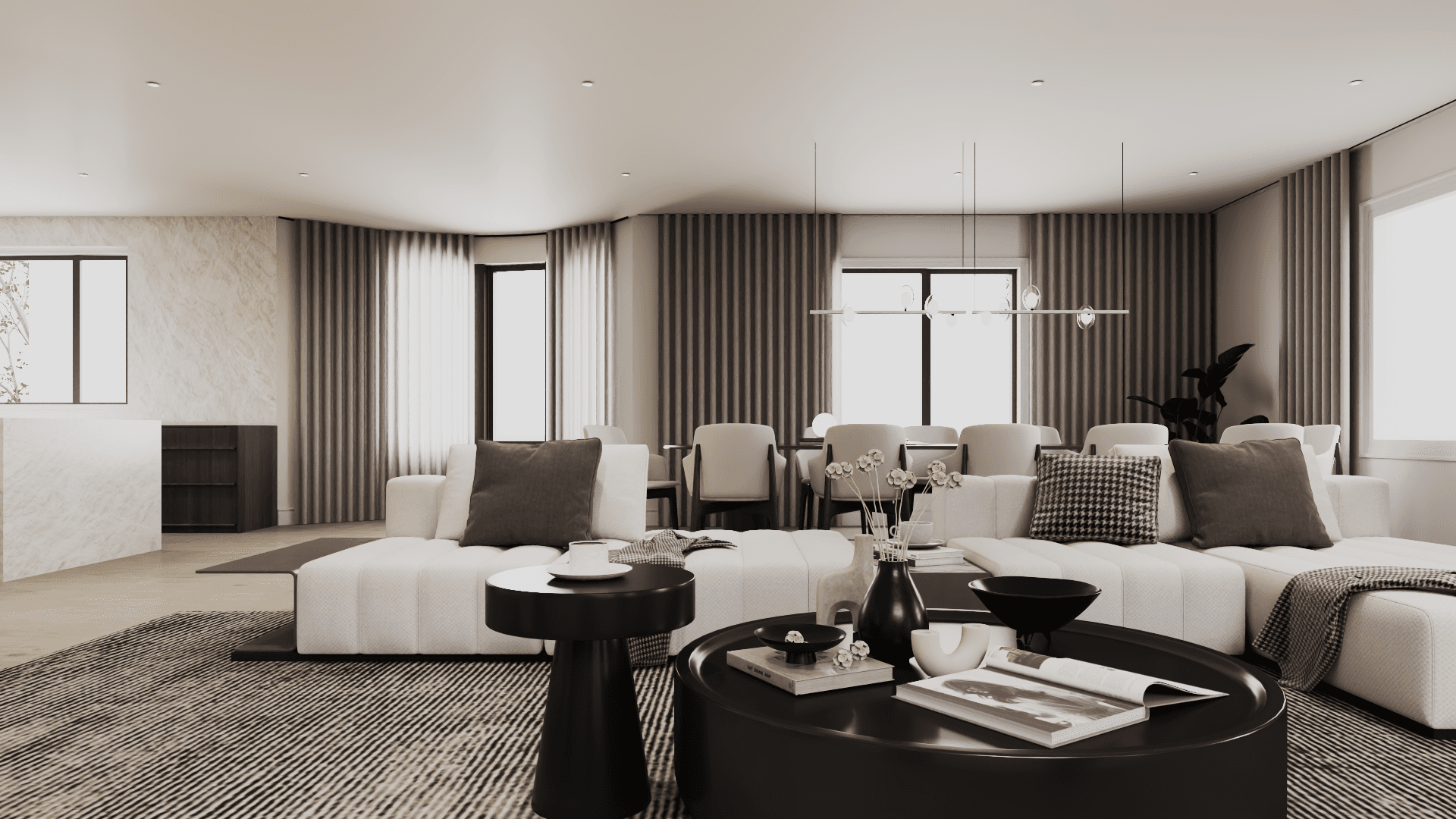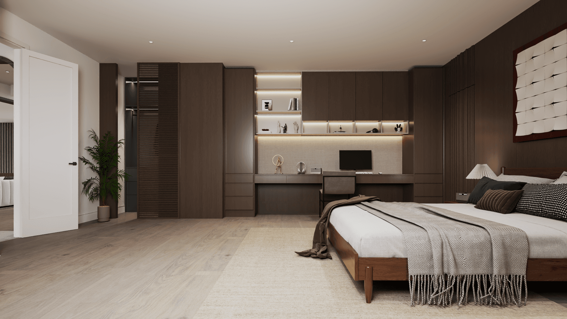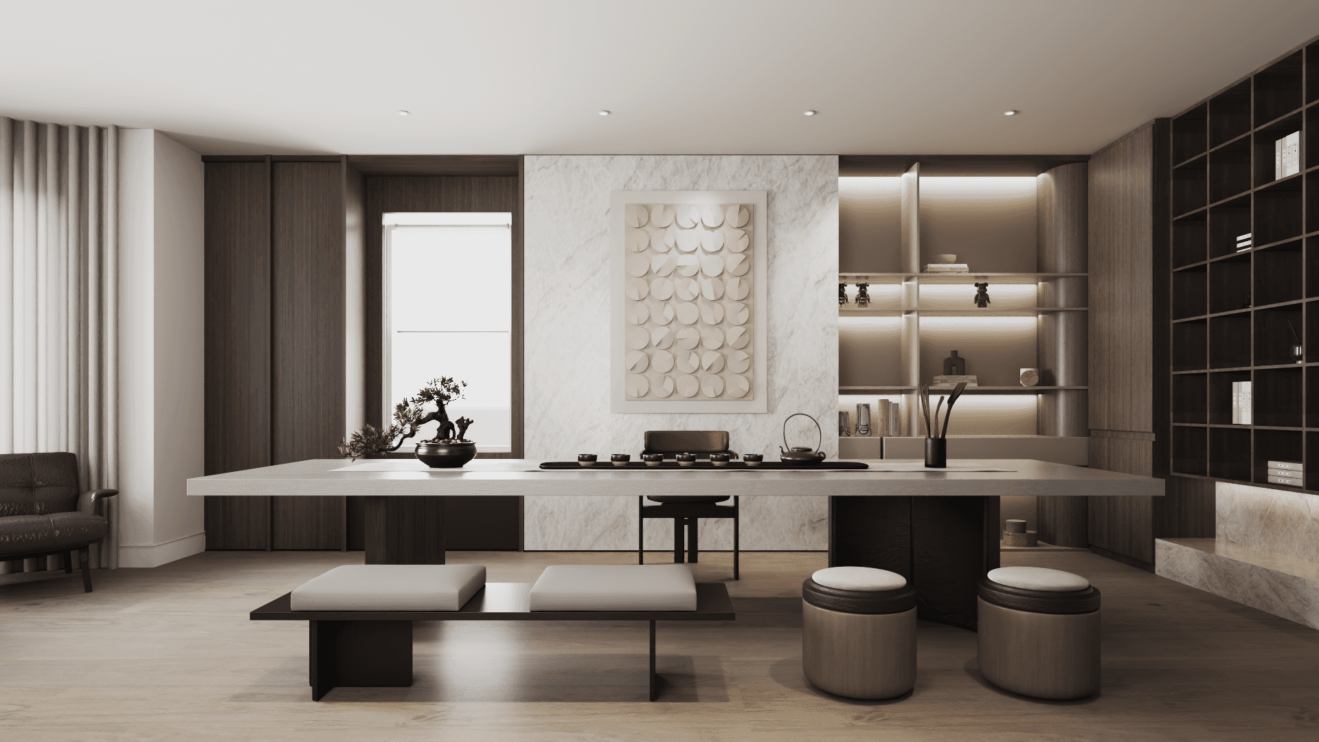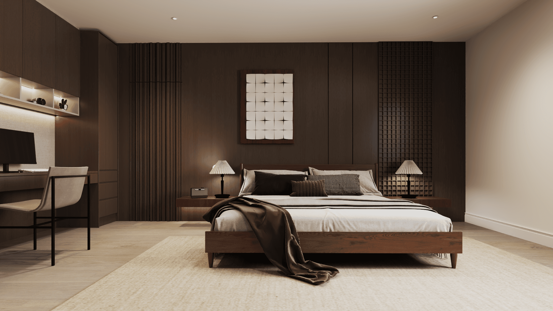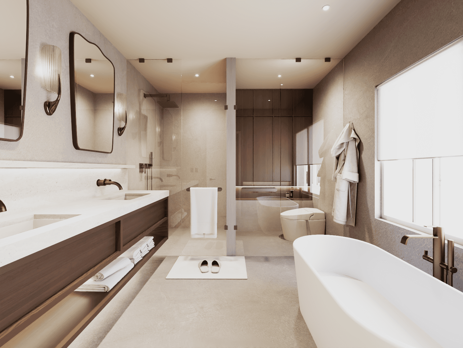 A whole-home renovation defined by a walnut-forward palette and natural stone accents—mid-century–influenced warmth refined through contemporary, architectural restraint.