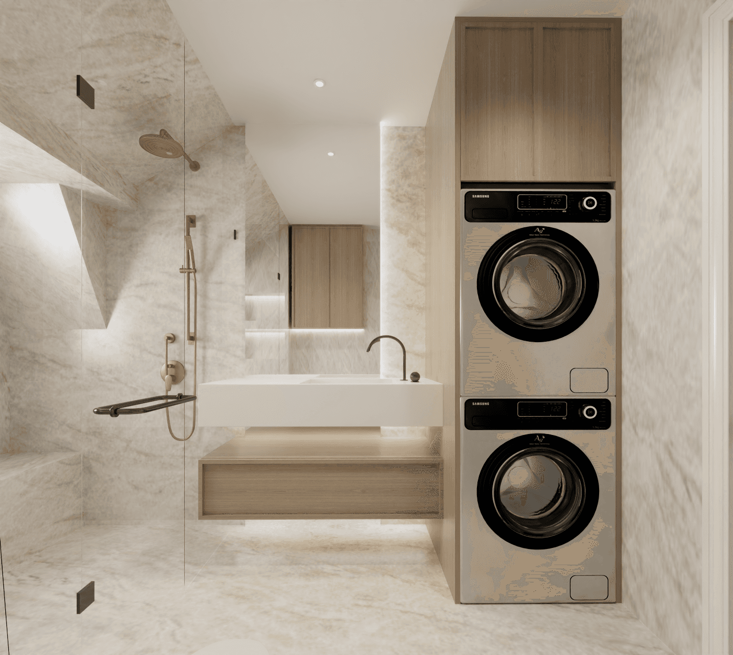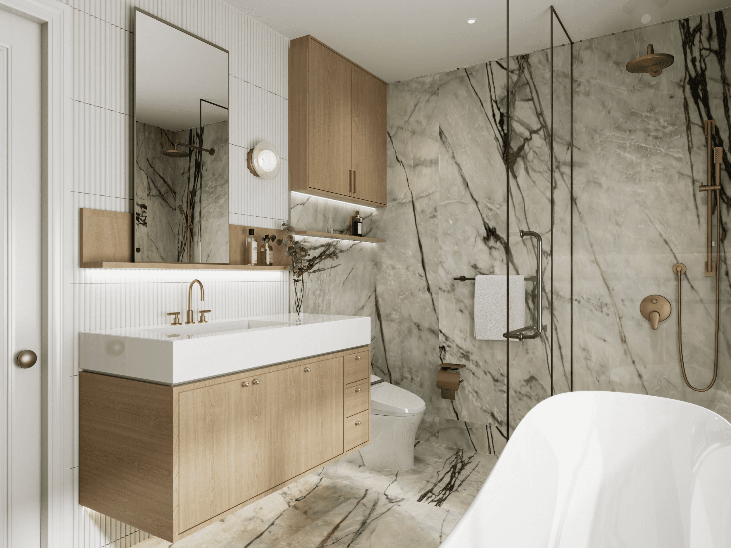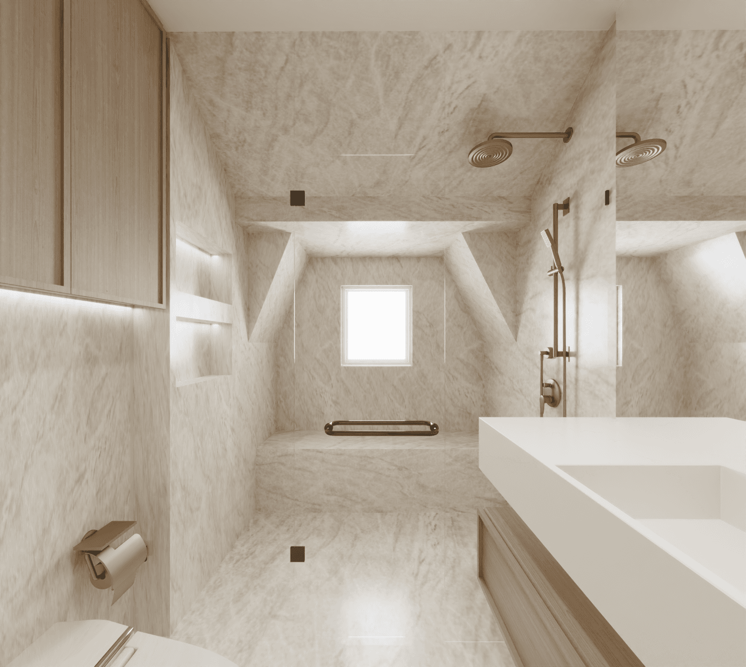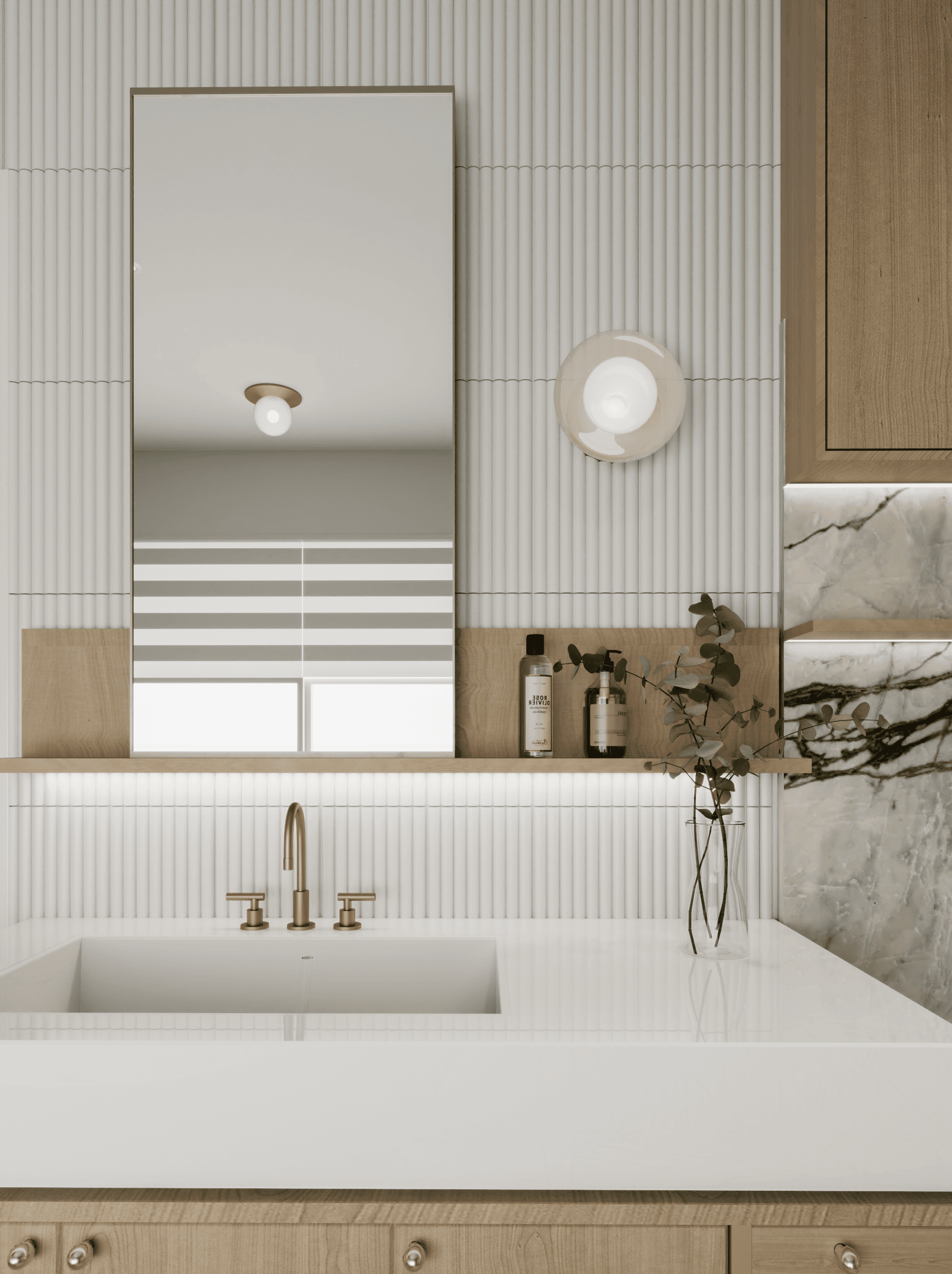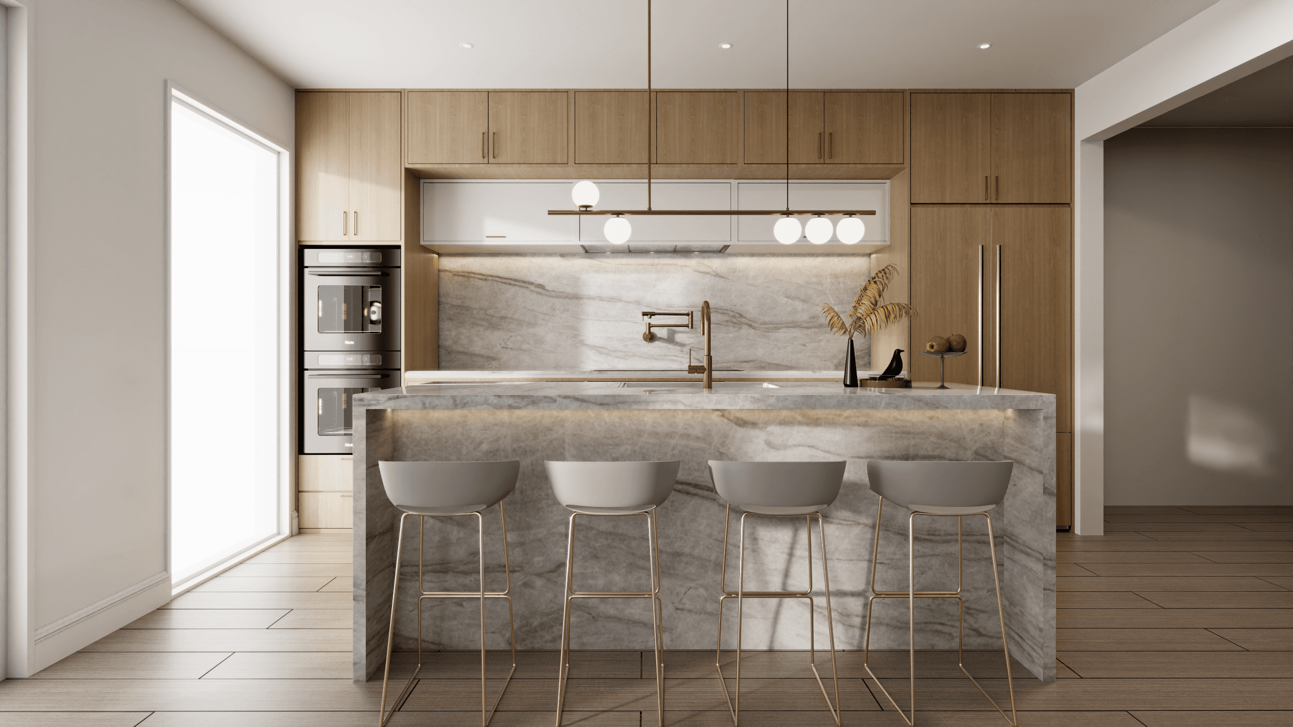 A renovation anchored by walnut warmth and Taj Mahal stone—reworking the home for cleaner flow while integrating tailored, built-in storage to elevate everyday function with a refined, timeless feel.